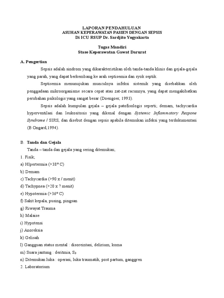 Laporan Pendahuluan Sepsis Di Icu Halaman / Dokumen