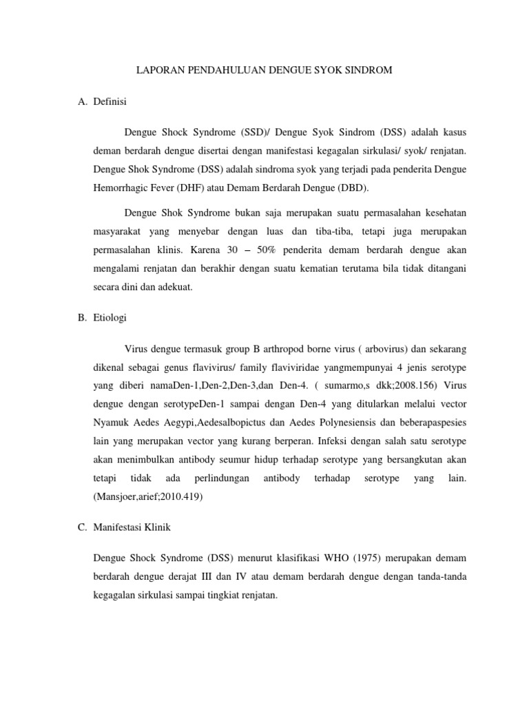 laporan pendahuluan dengue shock syndrome Download