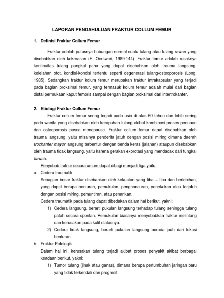 laporan pendahuluan fraktur collum femur Download