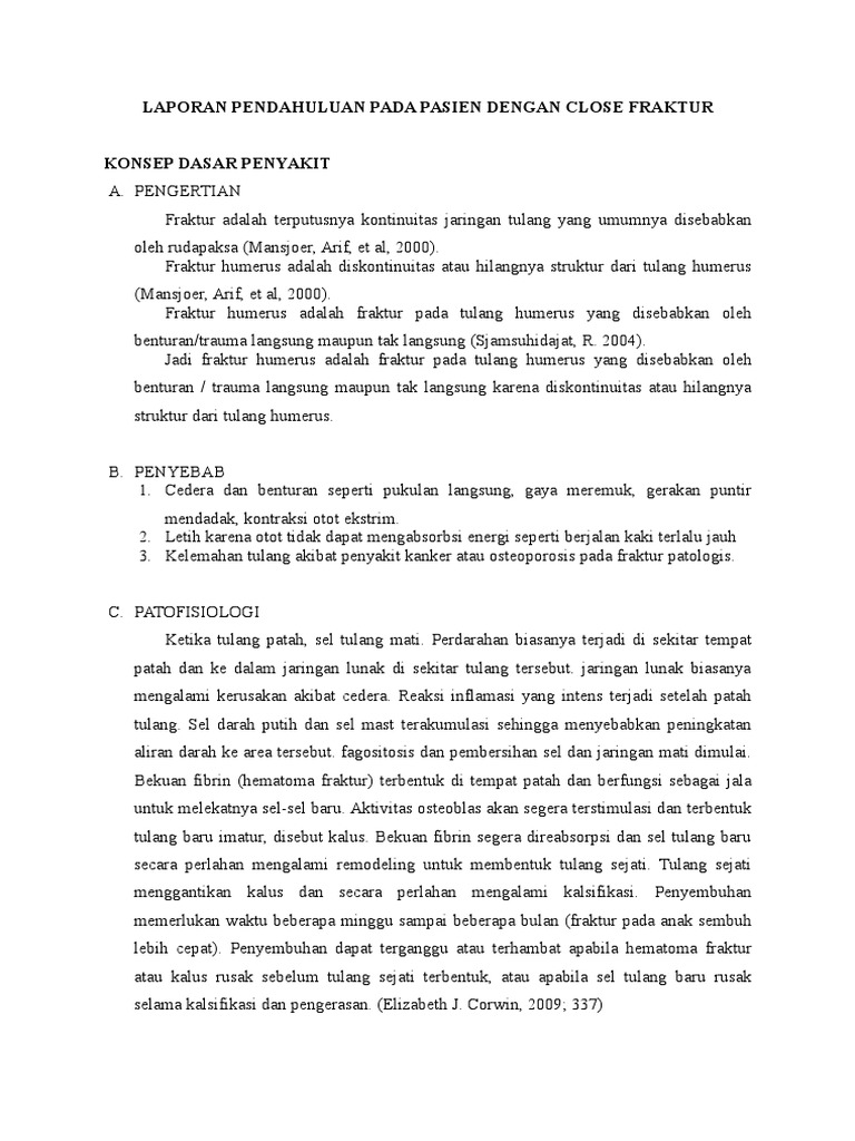 laporan pendahuluan fraktur tertutup Download