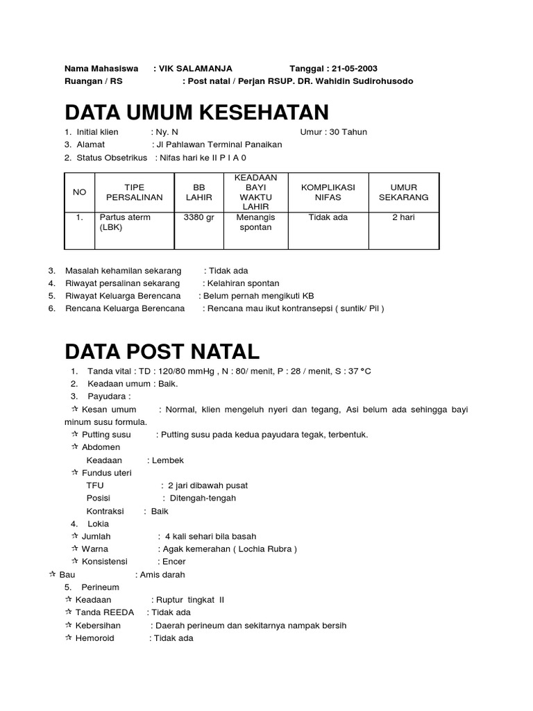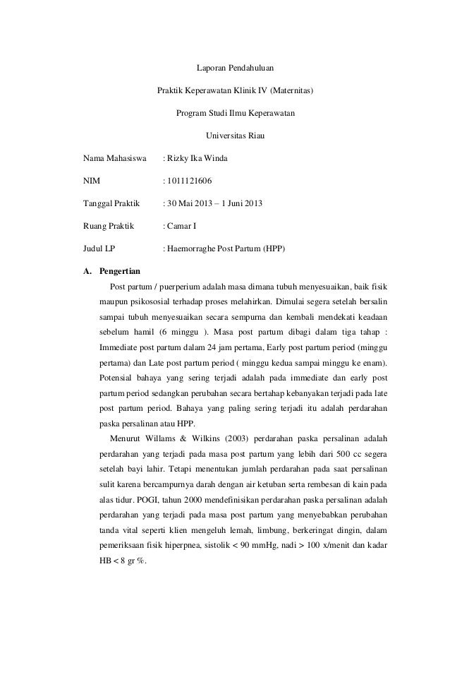 laporan pendahuluan post partum Download