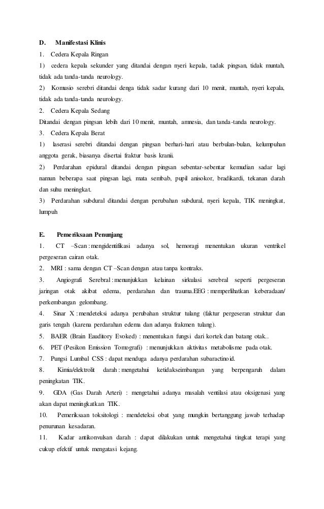 Bagi kamu yang sedang mencari informasi dokumen dengan format ppt,pdf,doc yang relevan dengan kata kunci makalah cedera kepala ,kamu telah berkunjung di postingan website yang tepat . Kami admin Chiarafans.club telah menyiapkan beberapa berkas dalam ekstensi ppt,pdf,doc dengan bermacam topik terkenal mulai dari kesehatan, lingkungan, bisnis, pendidikan, internet, asuransi, pertanian, dan masih banyak lagi tema menarik yang bisa anda temukan disini.