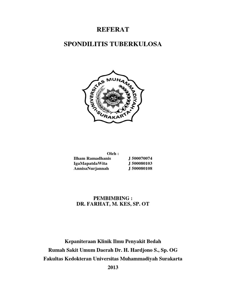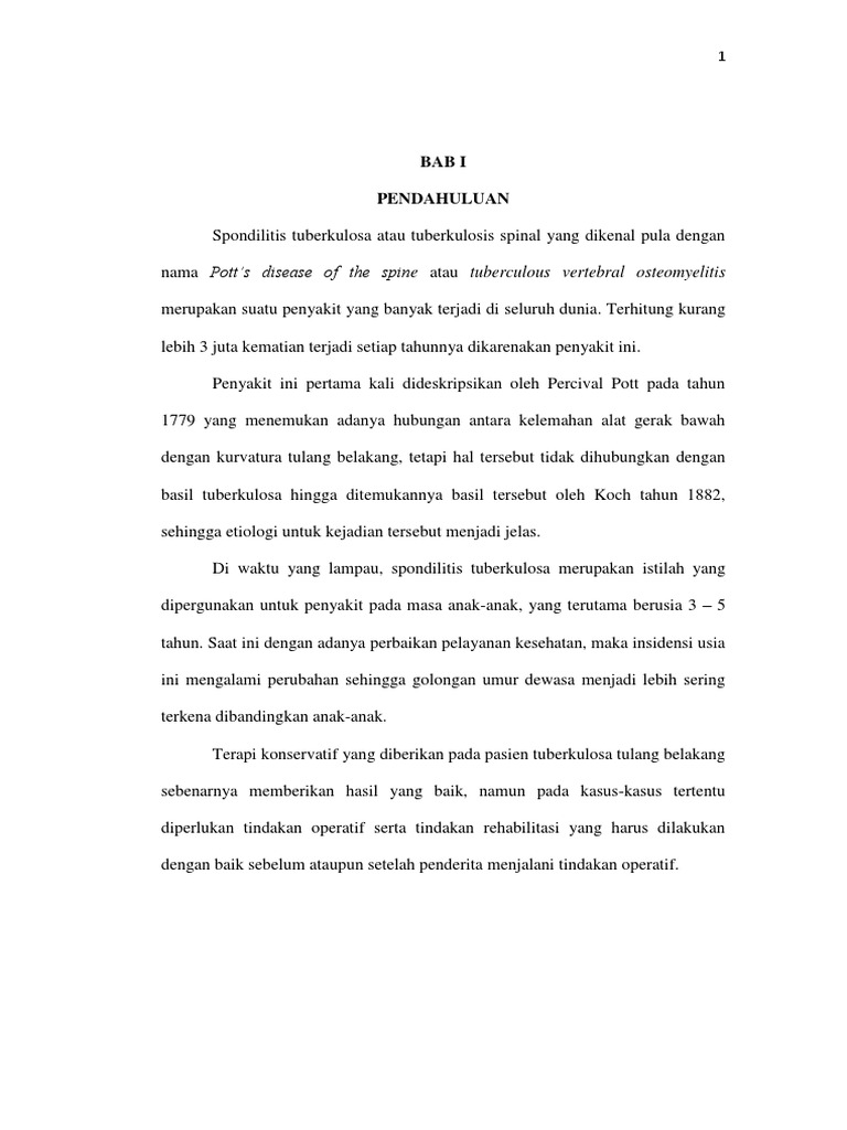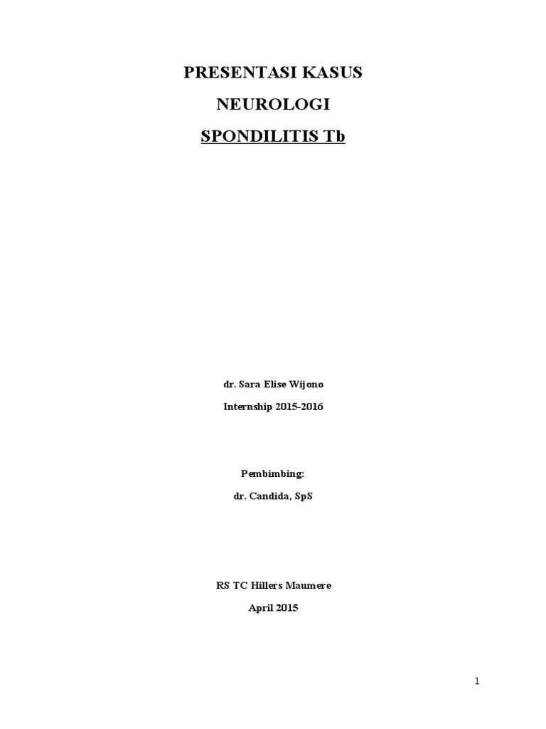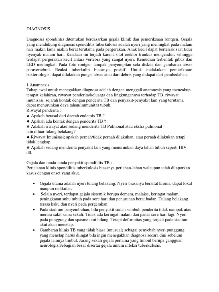 Bagi kamu yang mencari patofisiologi spondilitis tb maka chiara adalah tempat yang tepat untuk memulai. Kamu bisa menemukan ratusan ribu dokumen dari berbagai tema dan kategori dalam bentuk file Word, PDF atau Powerpoint. Kami menyediakan berbagai tema-tema populer mulai dari kesehatan, lingkungan, bisnis, pendidikan, internet, asuransi, pertanian, dan masih banyak lagi tema-tema menarik yang bisa kamu temukan disini.