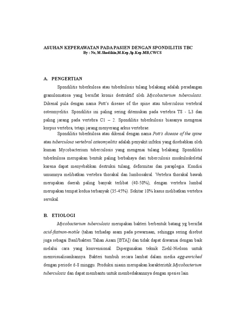 Patofisiologi Spondilitis Tb Halaman / Dokumen