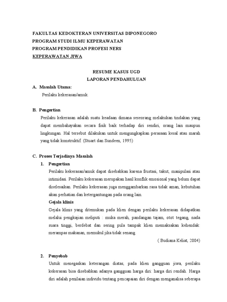 Asuhan Keperawatan Jiwa Resiko Perilaku Kekerasan Preview dan Sample
