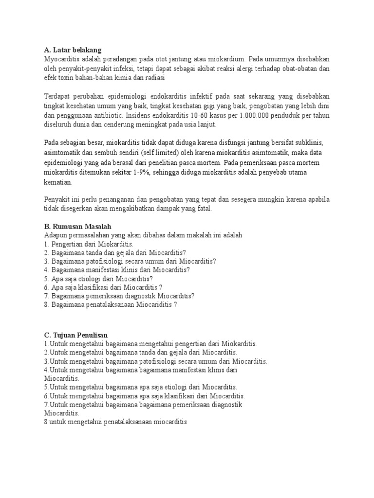 Bagi kamu yang lagi mencari informasi dokumen dengan format ppt,pdf,doc yang relevan dengan kata kunci asuhan keperawatan miokarditis ,anda telah berkunjung di postingan situs yang benar . Saya admin Chiarafans.club sudah siapkan beberapa berkas dalam ekstensi Word, PDF atau Powerpoint dengan bermacam topik terkenal mulai dari Asuhan Keperawatan TB, Ilmu Keperawatan, dan masih banyak lagi tema menarik yang dapat anda temukan disini.